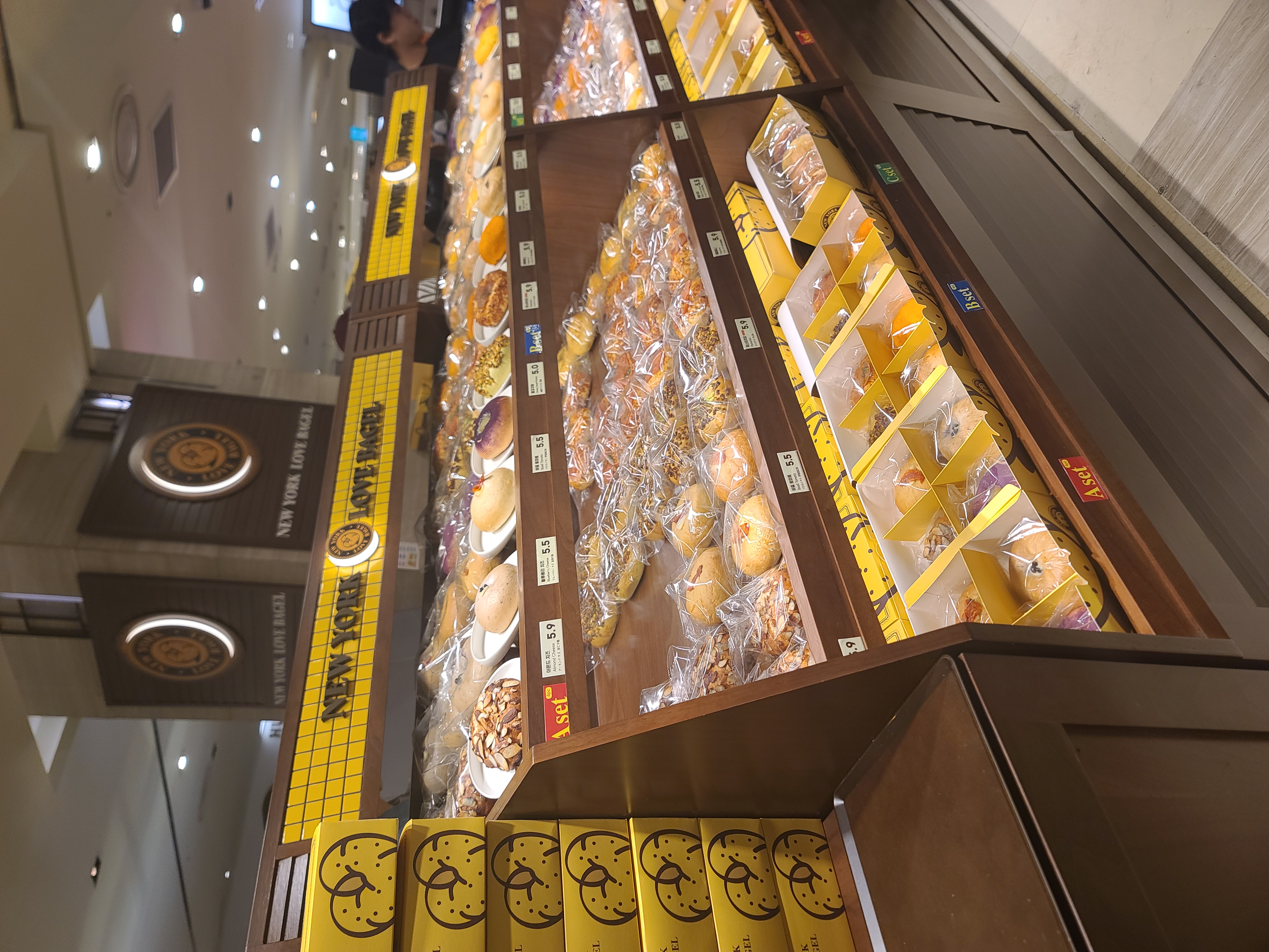 지나가다 시식해줘서 먹어봤는데 진심 맛있고 맛종류도 다양해여.. 블루베리베이글 짱입니다.