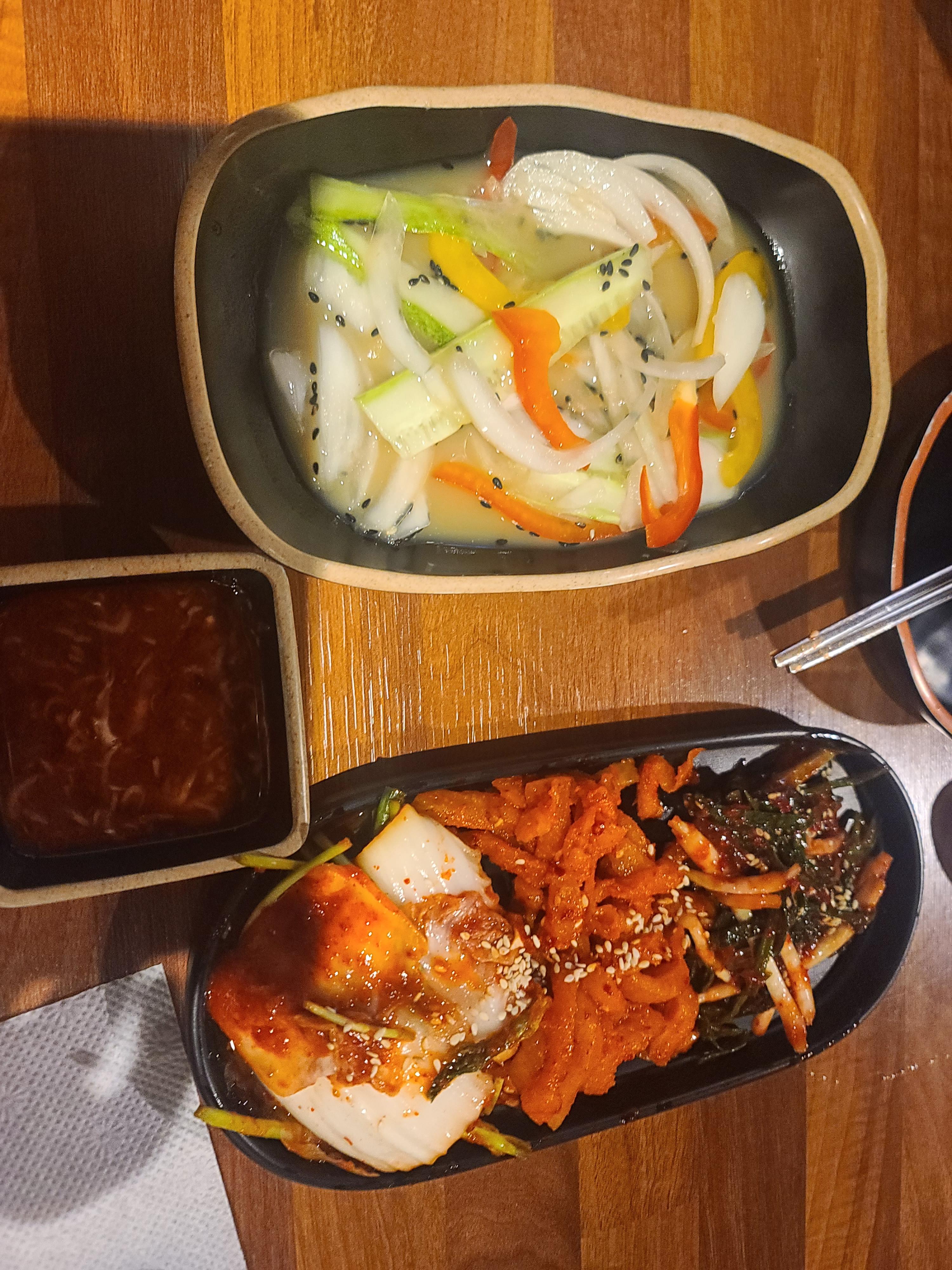 이렇게 메인 메뉴를 시키면 순두부찌개와 막국수가 같이 나온다.