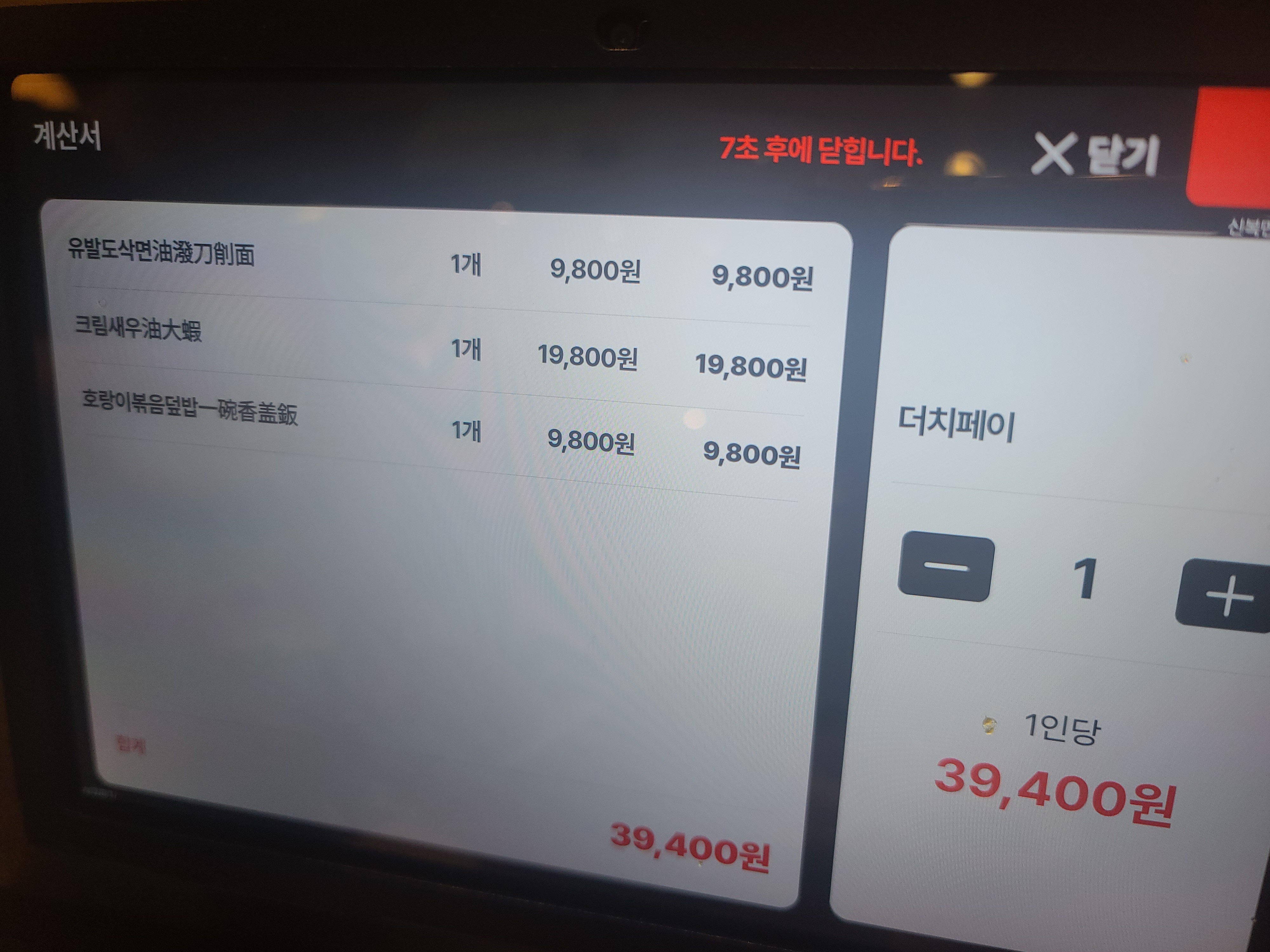 유발도삭면 9800원